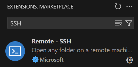 The first step is to install the extension for SSH connections. It's called Remote - SSH. You can easily find it in the VS Code Extensions tab by searching for SSH.