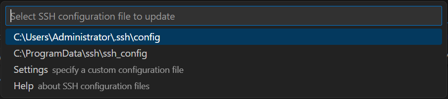 Press Ctrl + Shift + P to open the command palette, and type ssh configuration into it. You will find an option named Remote-SSH: Open SSH Configuration File.... Click it, and you'll be prompted to select an SSH configuration file to update. The first one is fine.